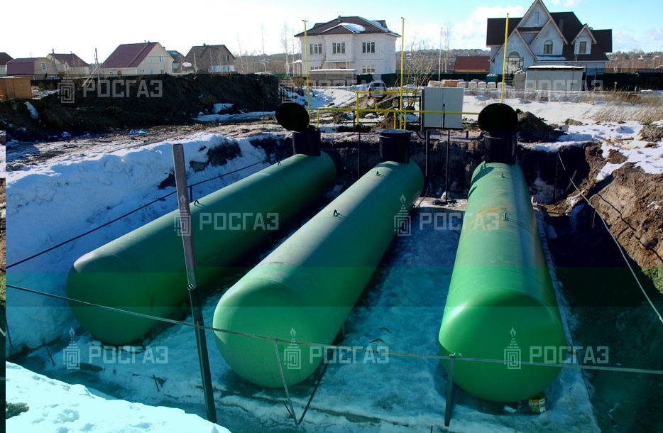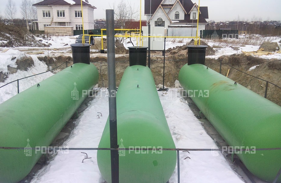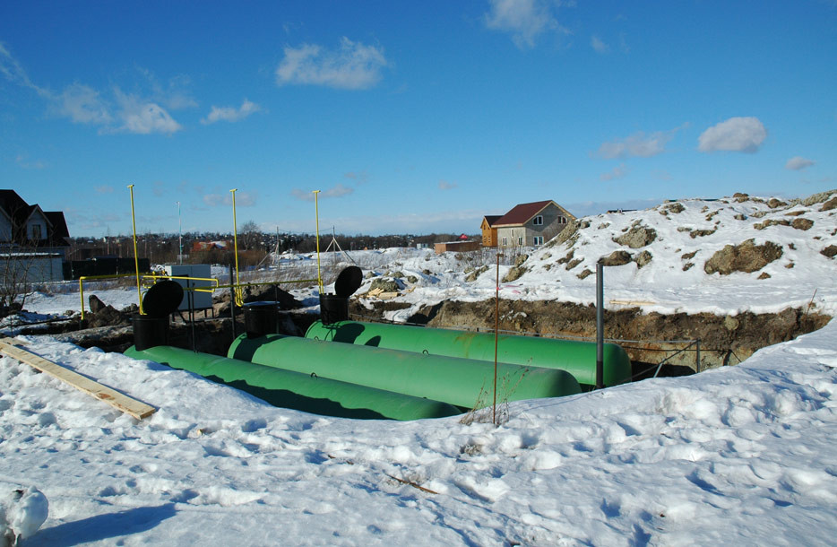 База хранения сжиженного углеводородного газа состоит из трех газгольдеров по 10 м.куб. Система автономного газоснабжения включает испарительную установку производительностью 100 кг/ч, подземный газопровод низкого давления (1000 м) и наземный стальной газопровод (150 м).