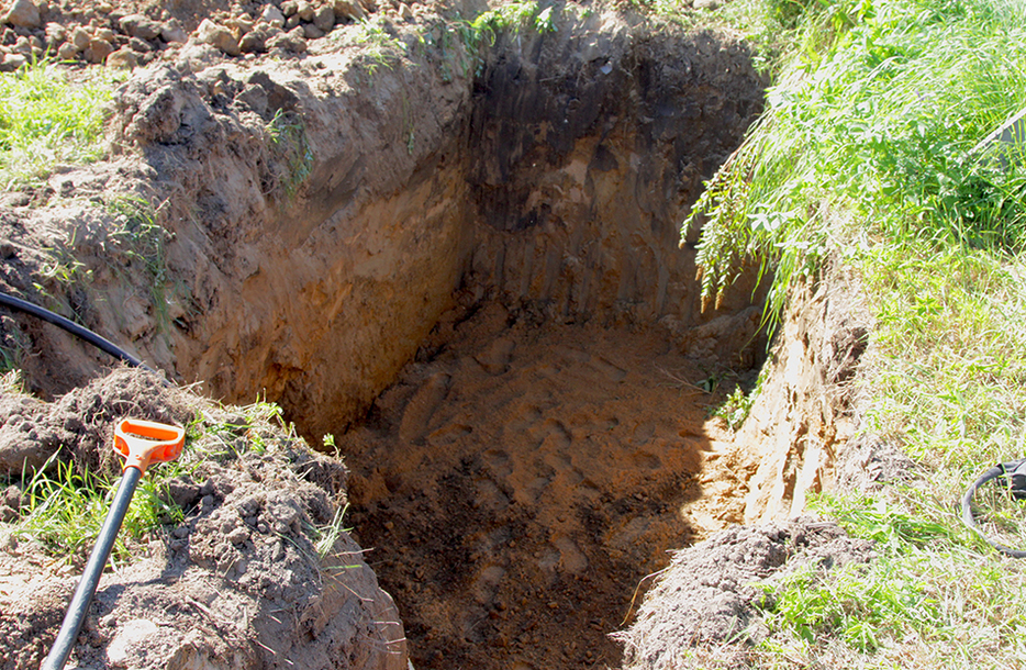 Во время установки оборудования для автономной газификации было проведено рытье котлована и траншеи экскаватором-погрузчиком с выполнением шурфов с целью найти коммуникации.