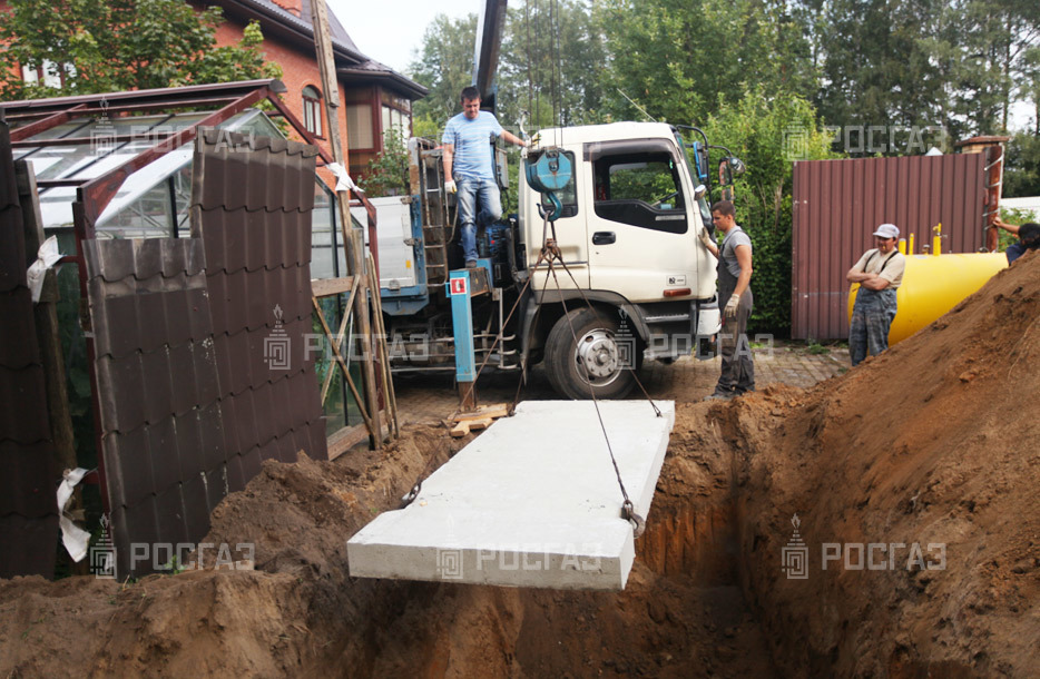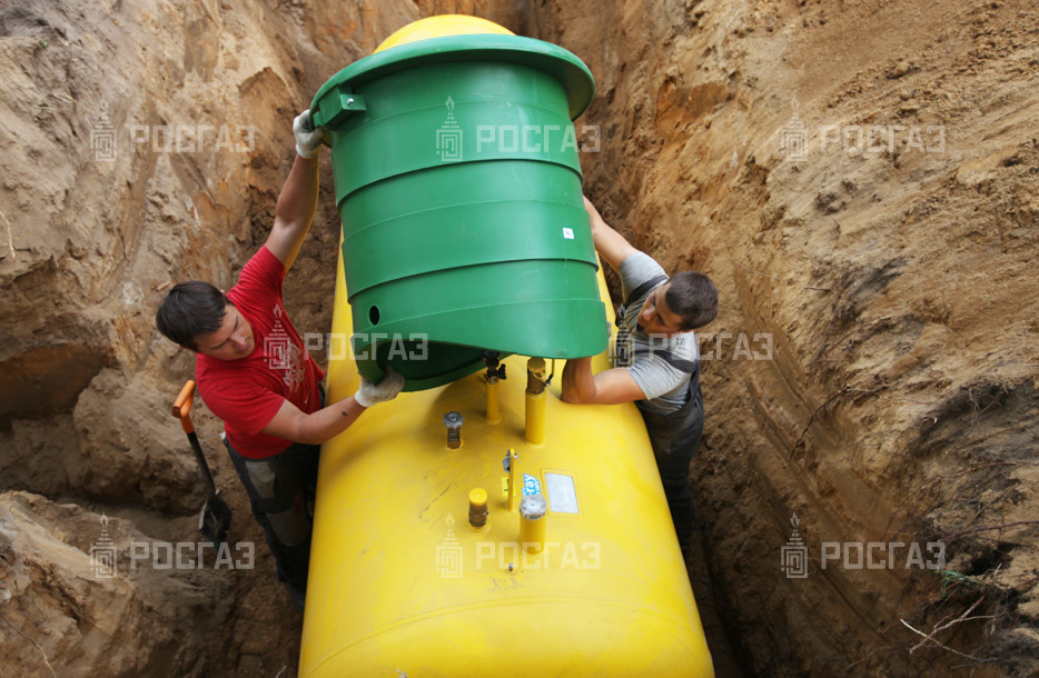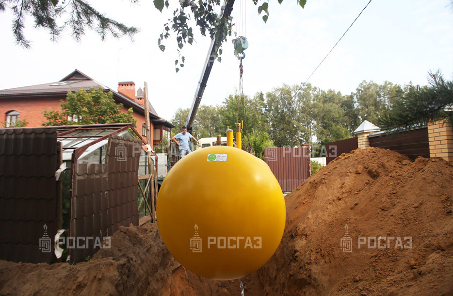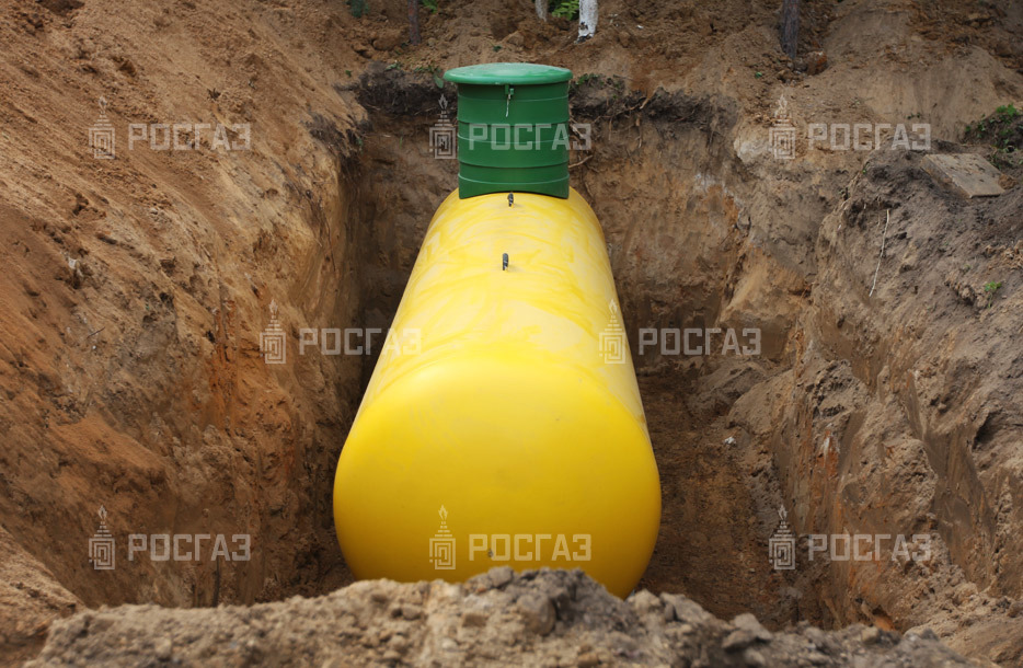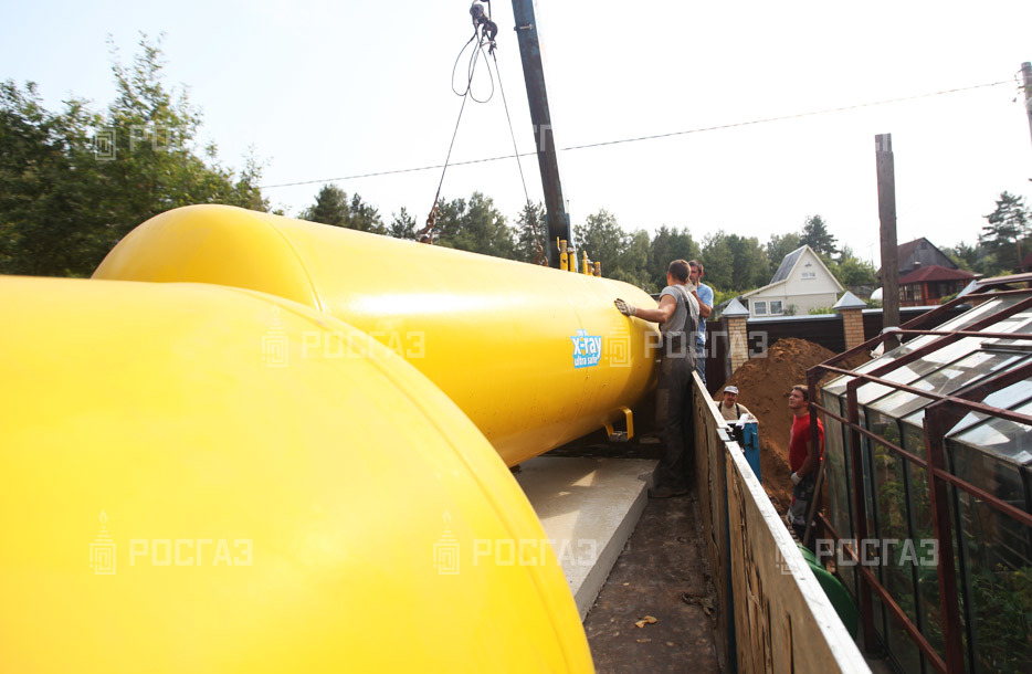 Стандартный газгольдер 4,8 м.куб. Монтаж системы локальной газификации вместе с земельными работами выполнены сотрудниками компании «РосГаз».