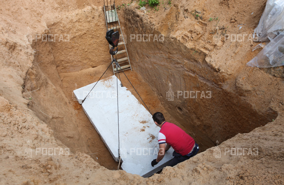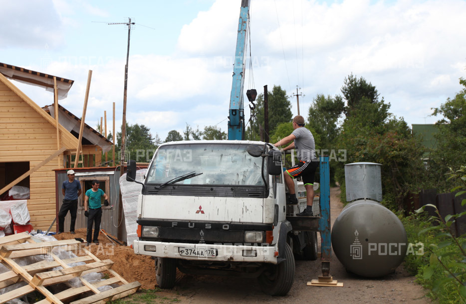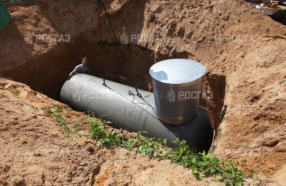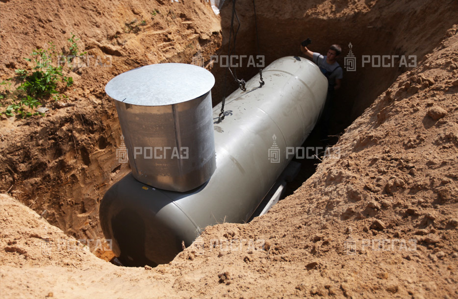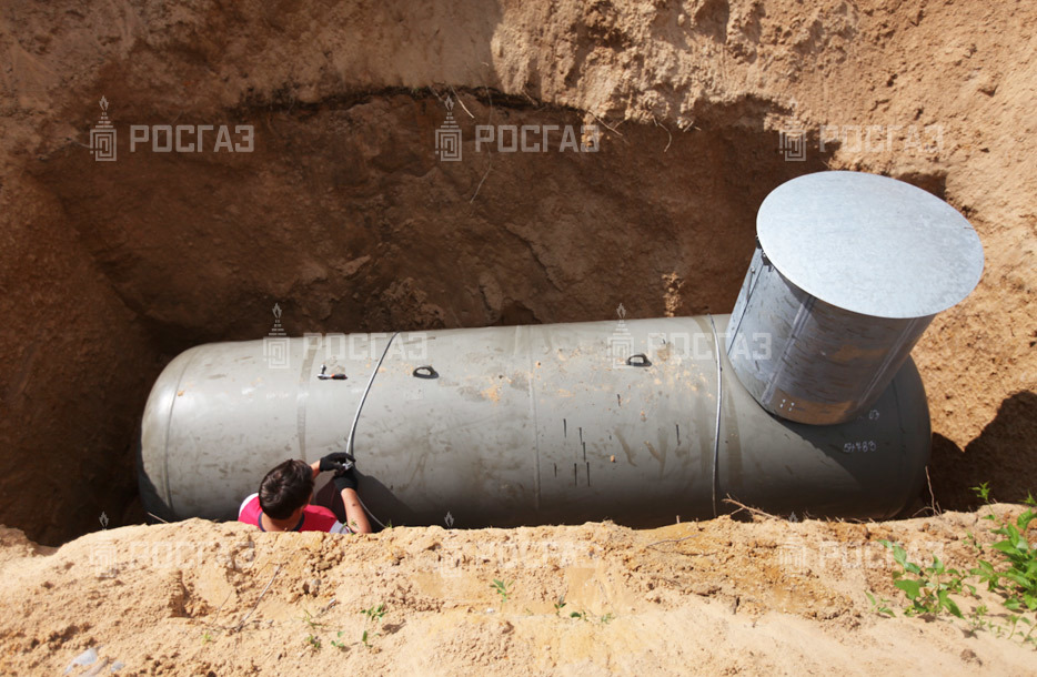 Заказчик подготовил котлован по техническому заданию инженера компании «РосГаз» и также самостоятельно проводил засыпку ёмкости и траншеи. Монтажная бригада установила стандартный газгольдер 4,8 м. куб.